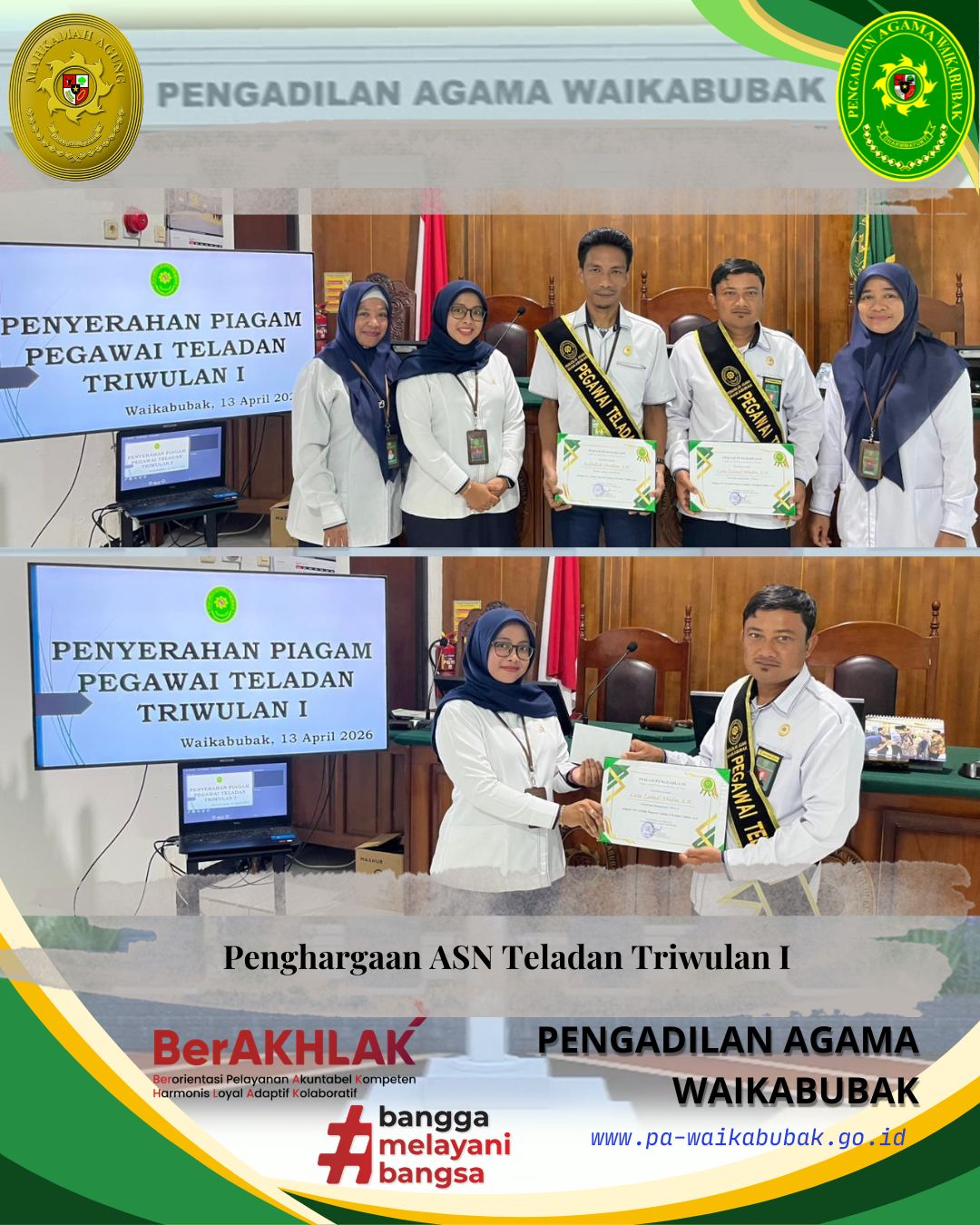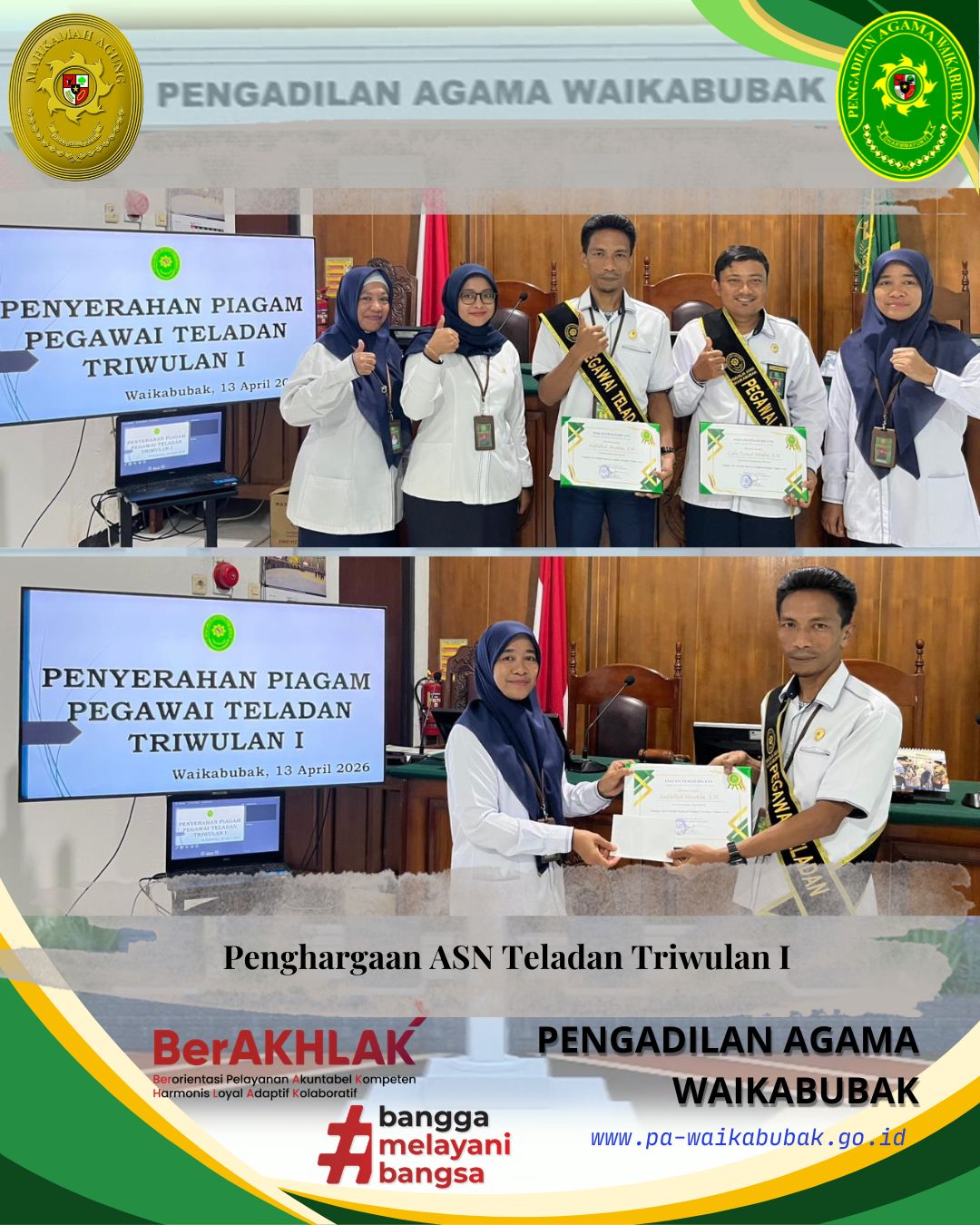 Penerima penghargaan ASN Teladan Triwulan I 2026 jatuh kepada: