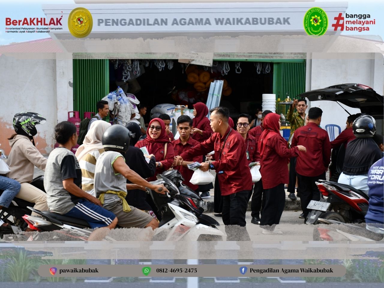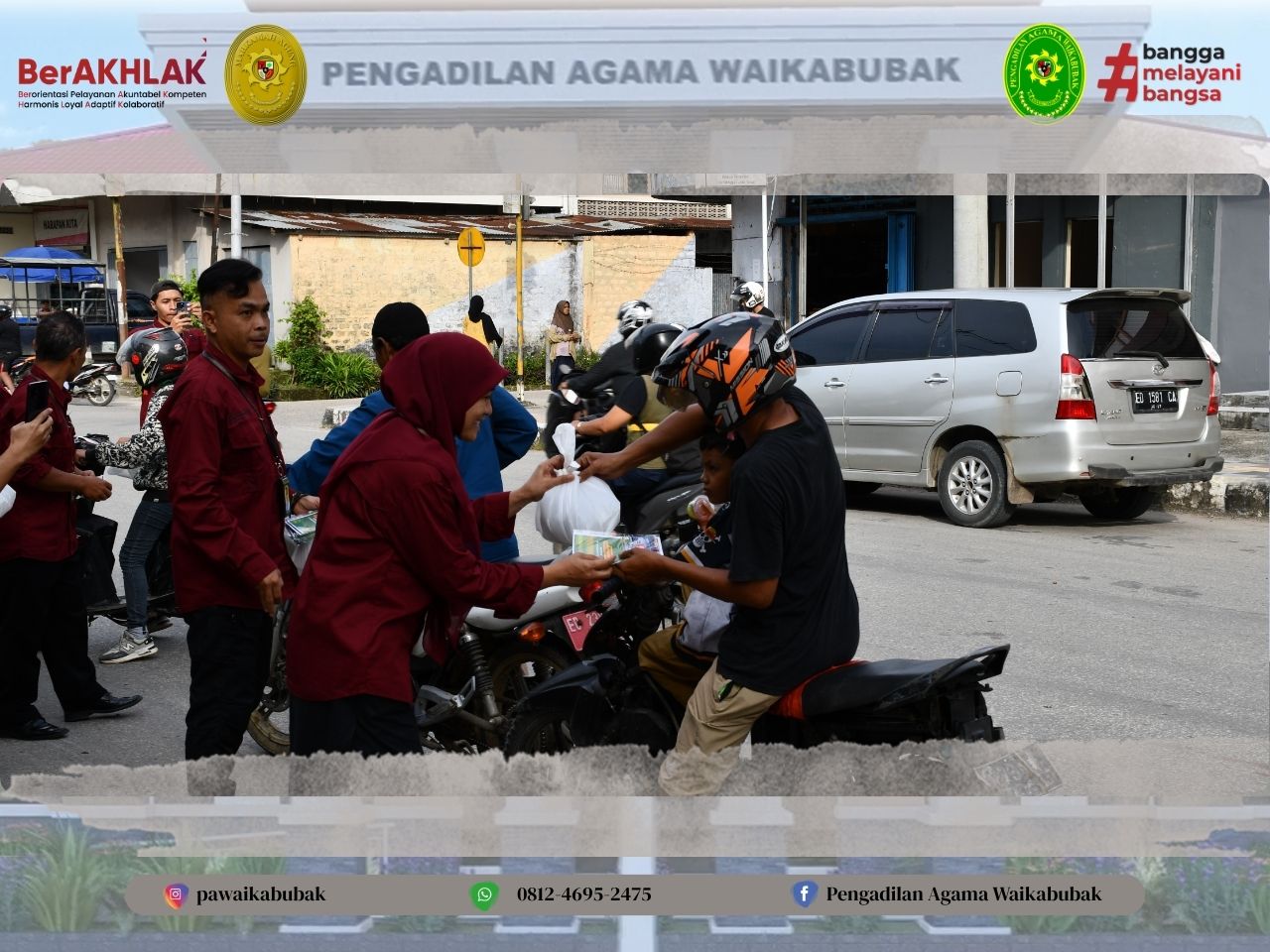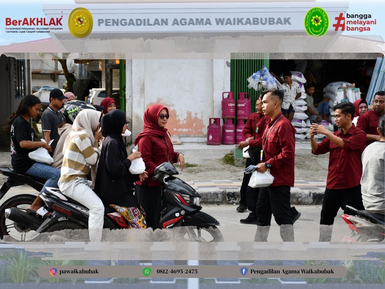 Waikabubak, Maret 2026 – Memasuki pertengahan bulan suci Ramadan 1447 H, Pengadilan Agama (PA) Waikabubak menyelenggarakan aksi sosial berupa pembagian takjil gratis kepada masyarakat. Kegiatan ini dilaksanakan di depan kantor PA Waikabubak dan beberapa titik jalan protokol di pusat kota Waikabubak.